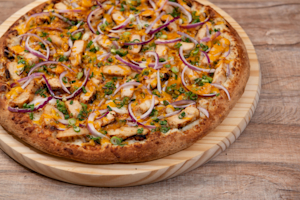 Original Barbeque ChickenBBQ sauce, mozzarella cheese, red onions, chicken, cheddar cheese and green onions.